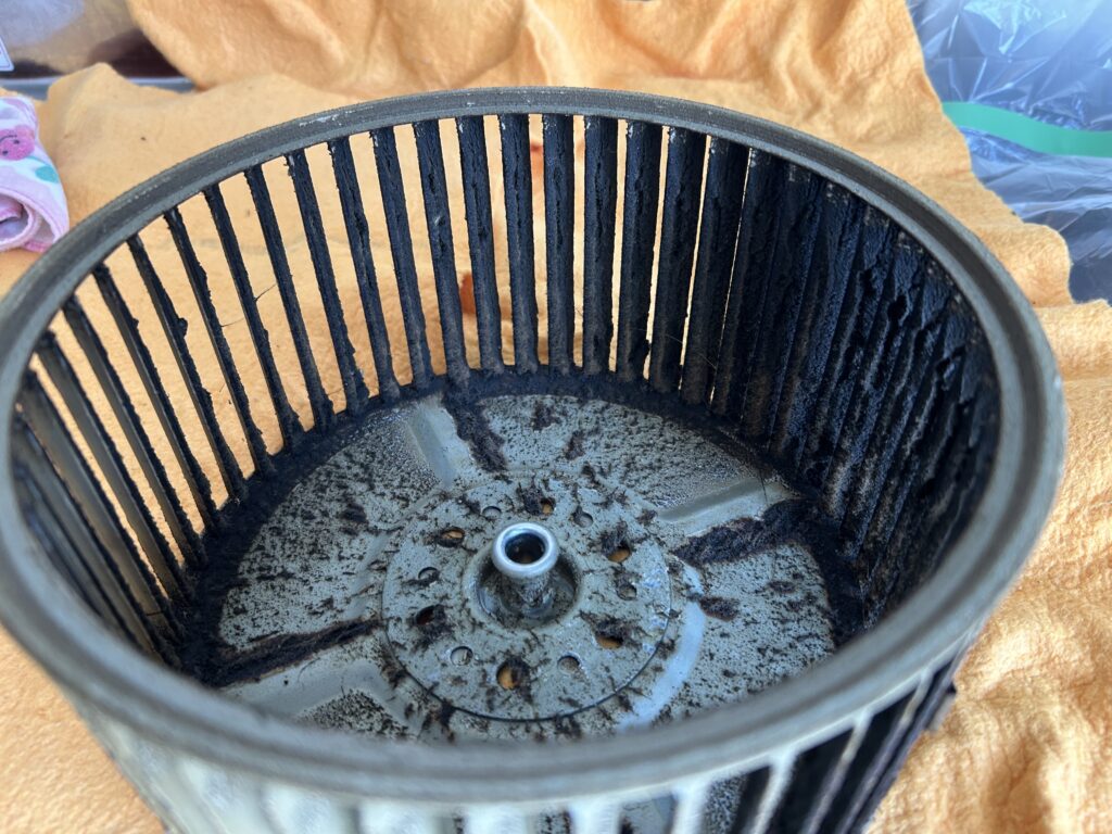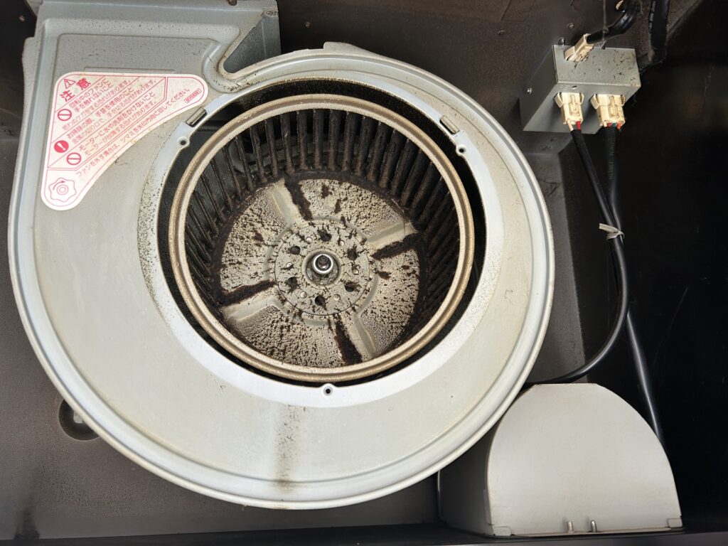 シロッコファンの羽の間にも汚れがびっしり付着しています。