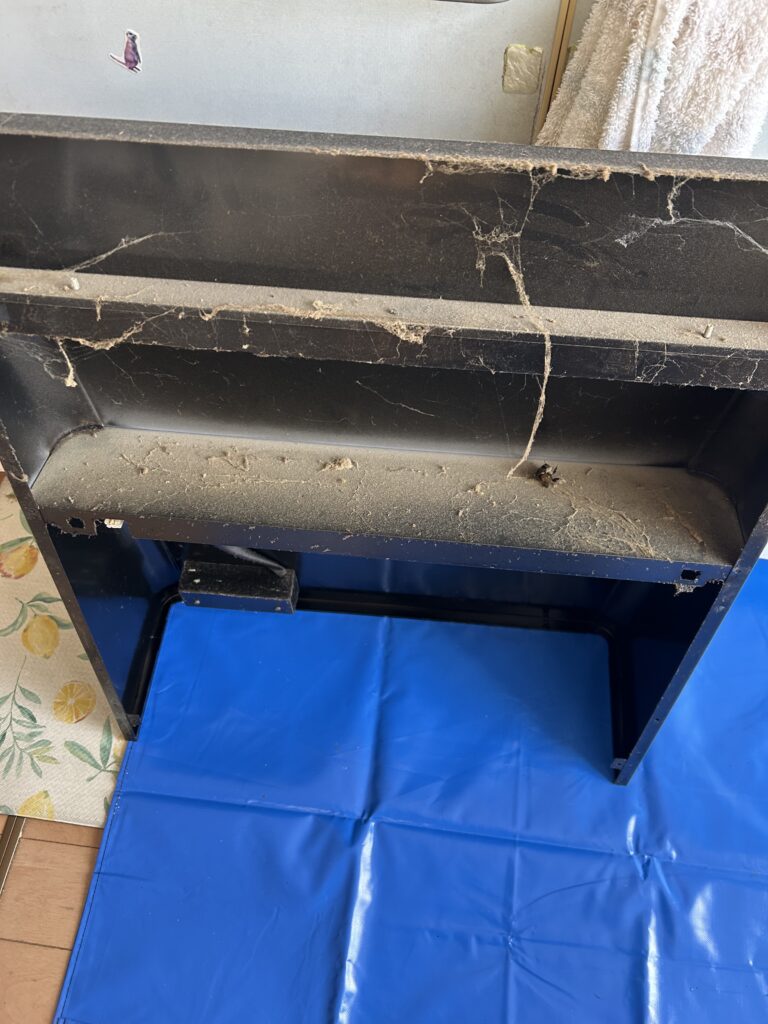レンジフードカバーの裏側にも油の付着したほこりが溜まっていました。